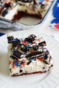 In 9 X 13 baking dish, press Red Velvet Oreo mixture into bottom of dish to make a crust.